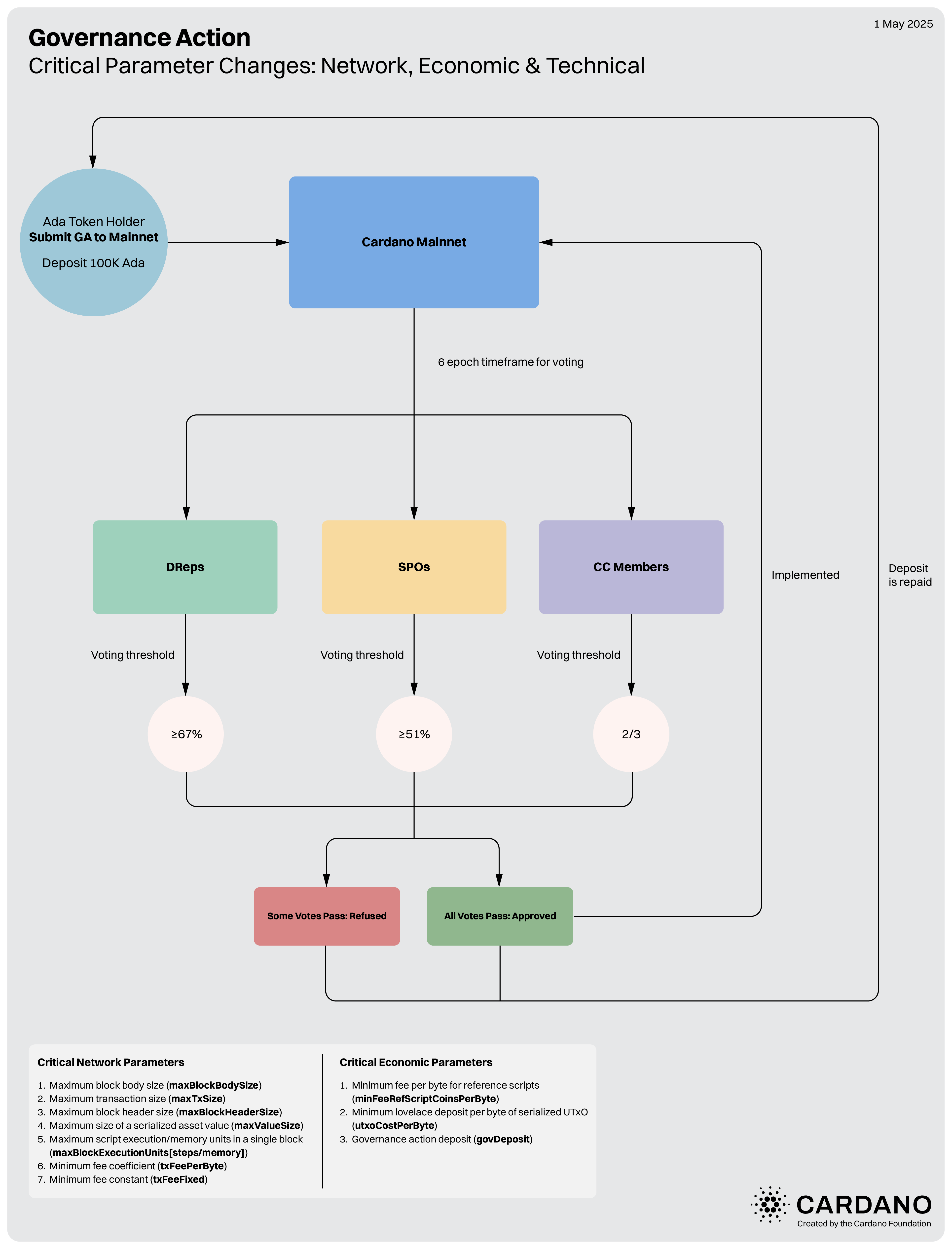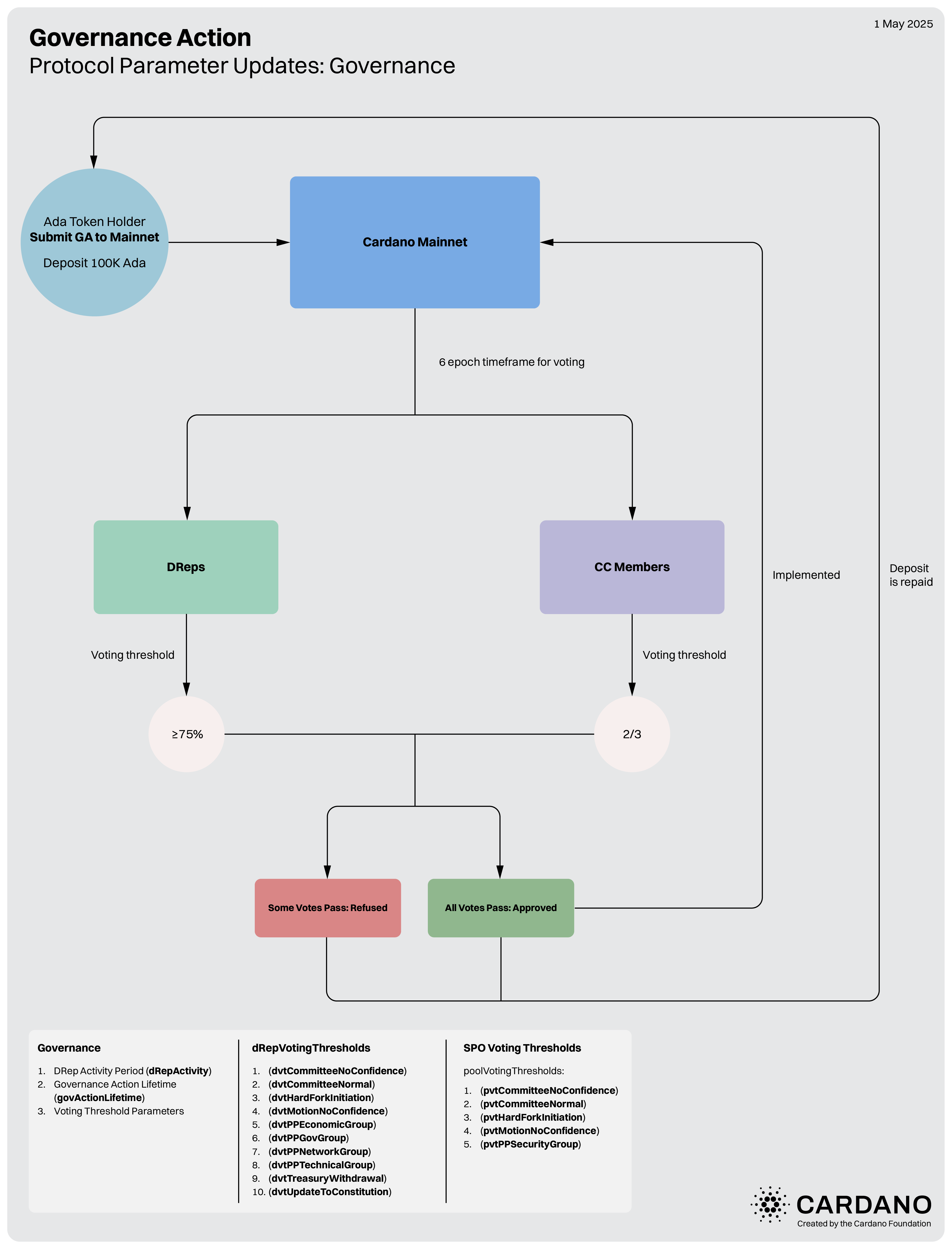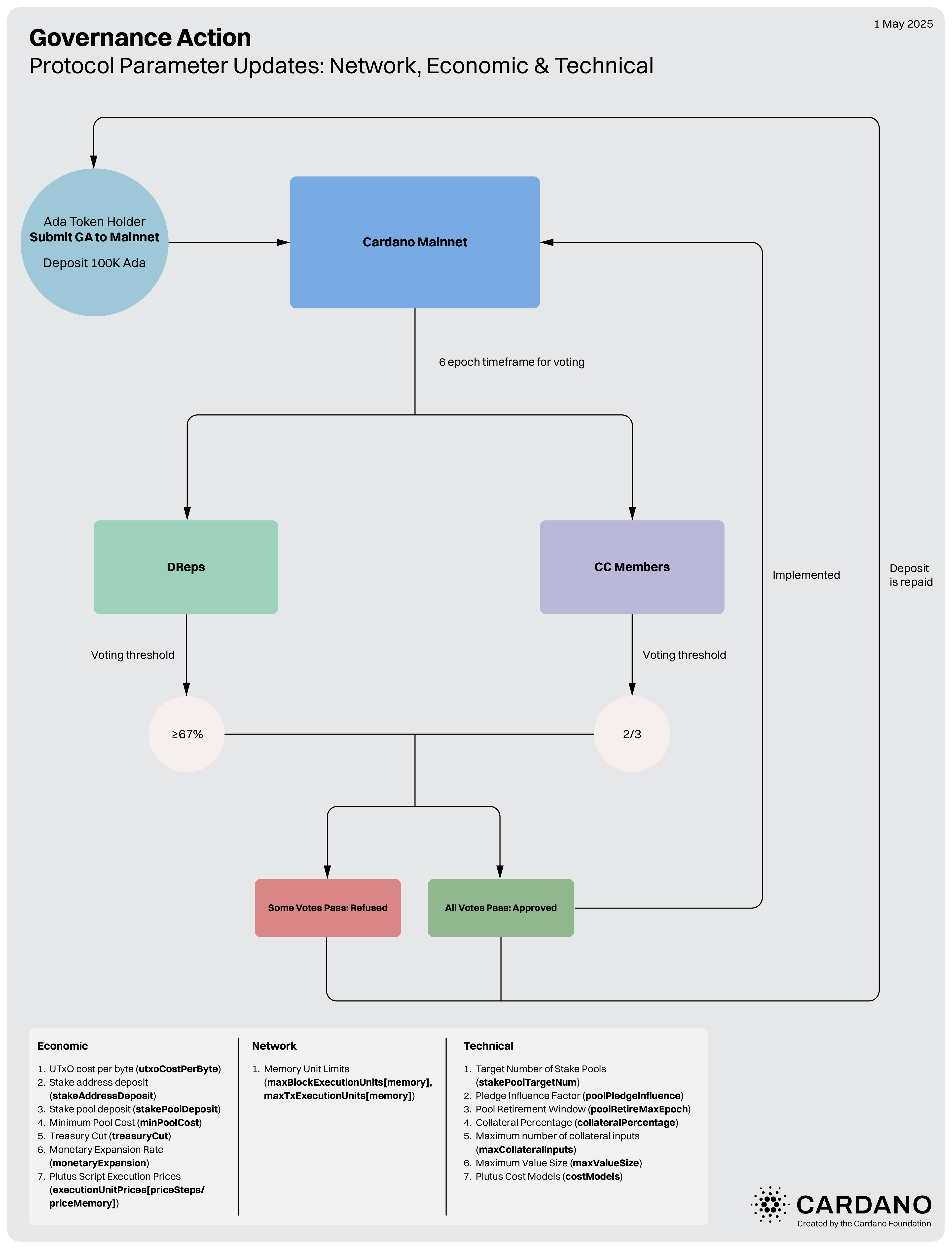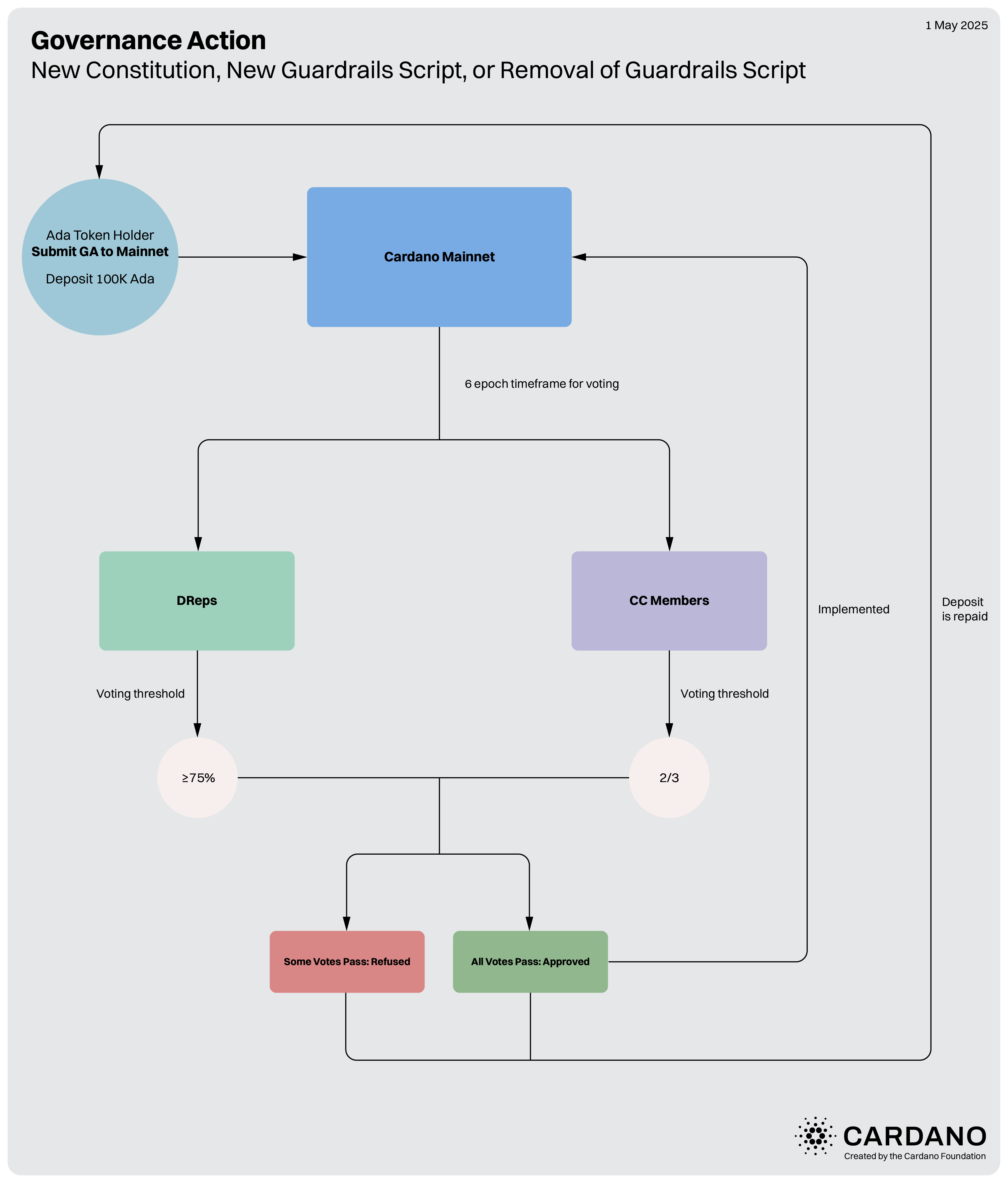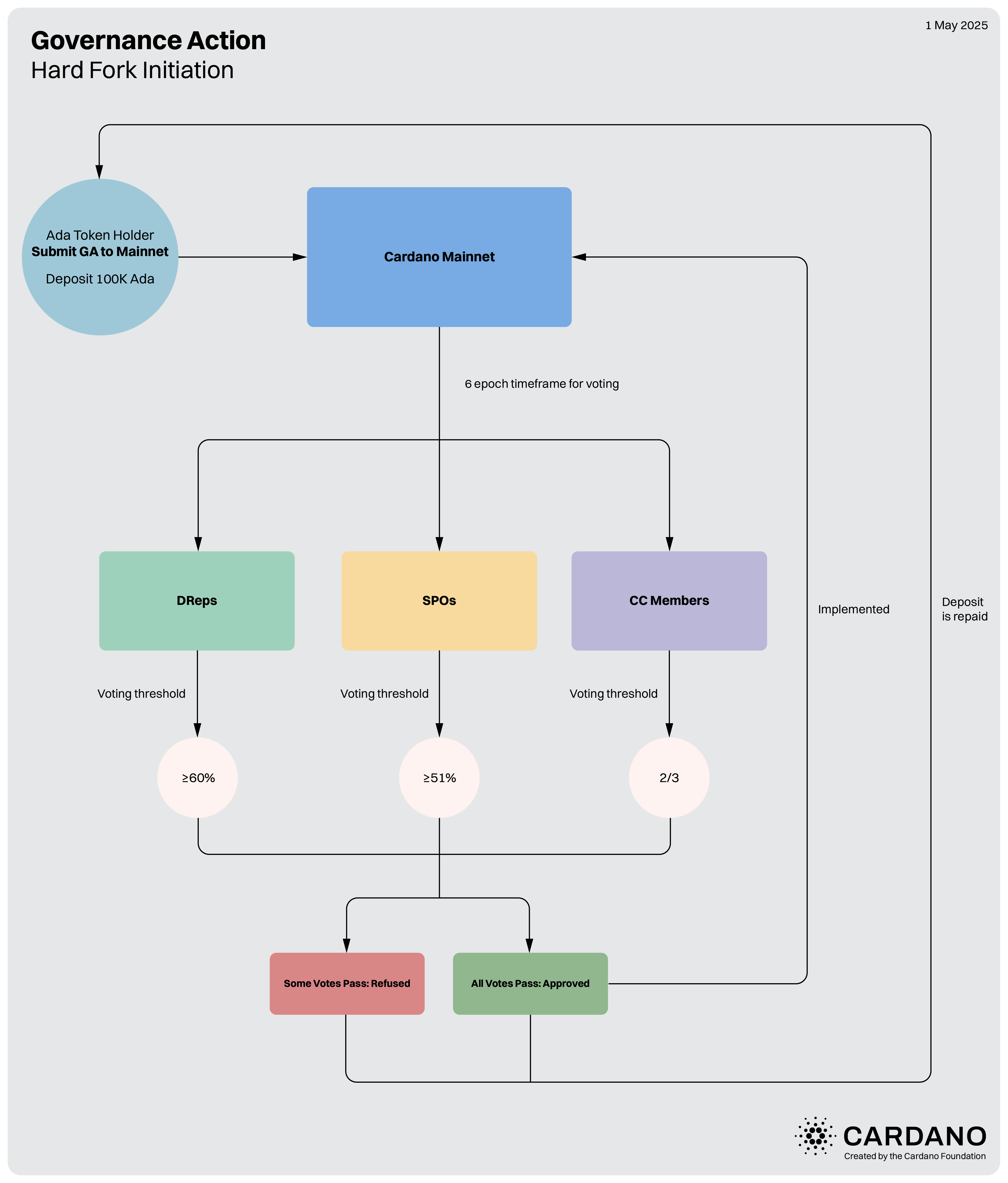 The Cardano Foundation has created 14 flow charts representing the current voting process for different types of governance actions. These resources are designed to digest complex processes into easy to follow steps that will help everyone participating in the Cardano ecosystem.