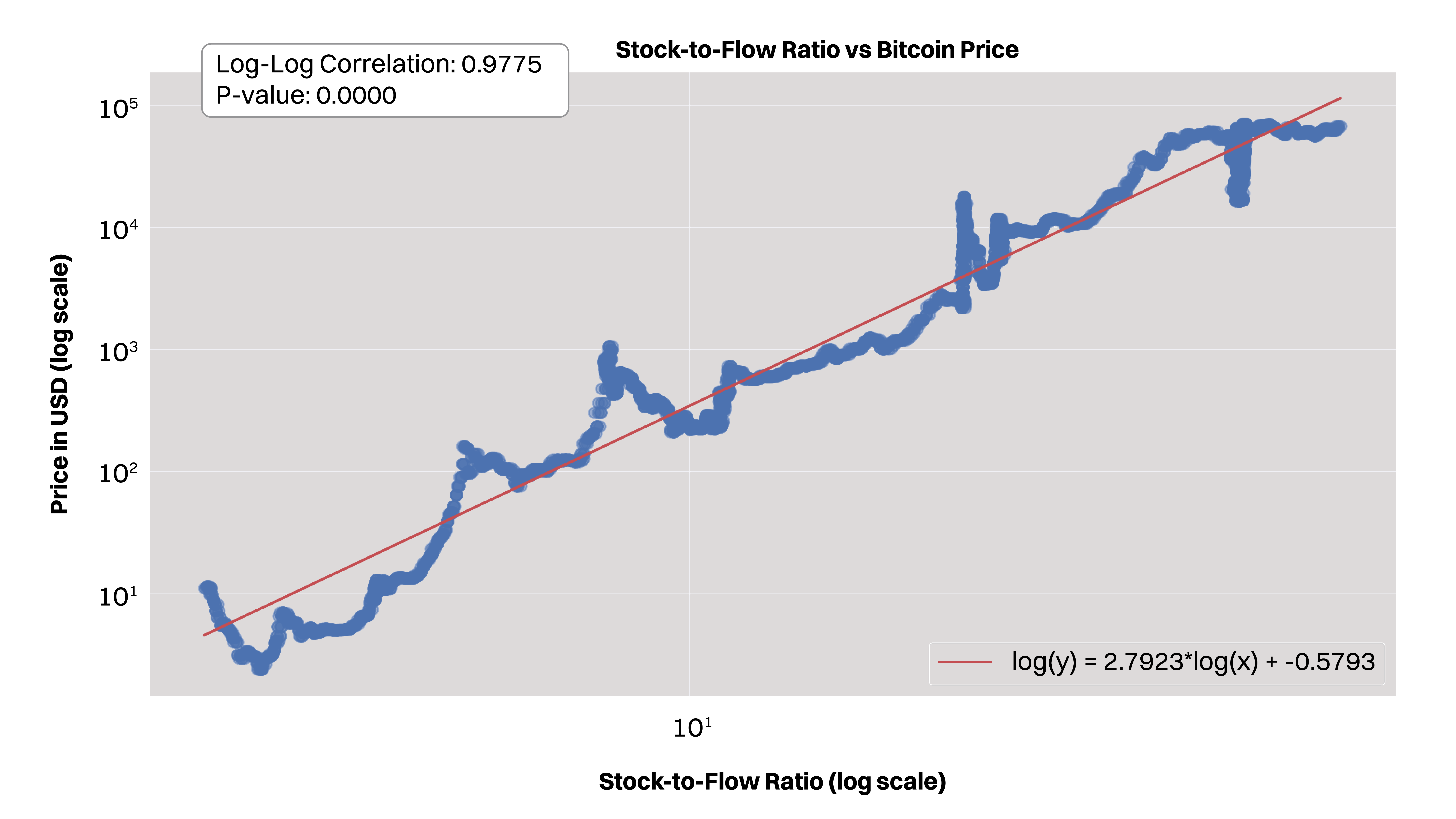 Bitcoin Stock-to-Flow vs Price: The logarithmic relationship between Bitcoin’s Stock-to-Flow ratio and price shows a strong correlation, supporting the scarcity narrative but potentially overestimating the direct impact of halvings.