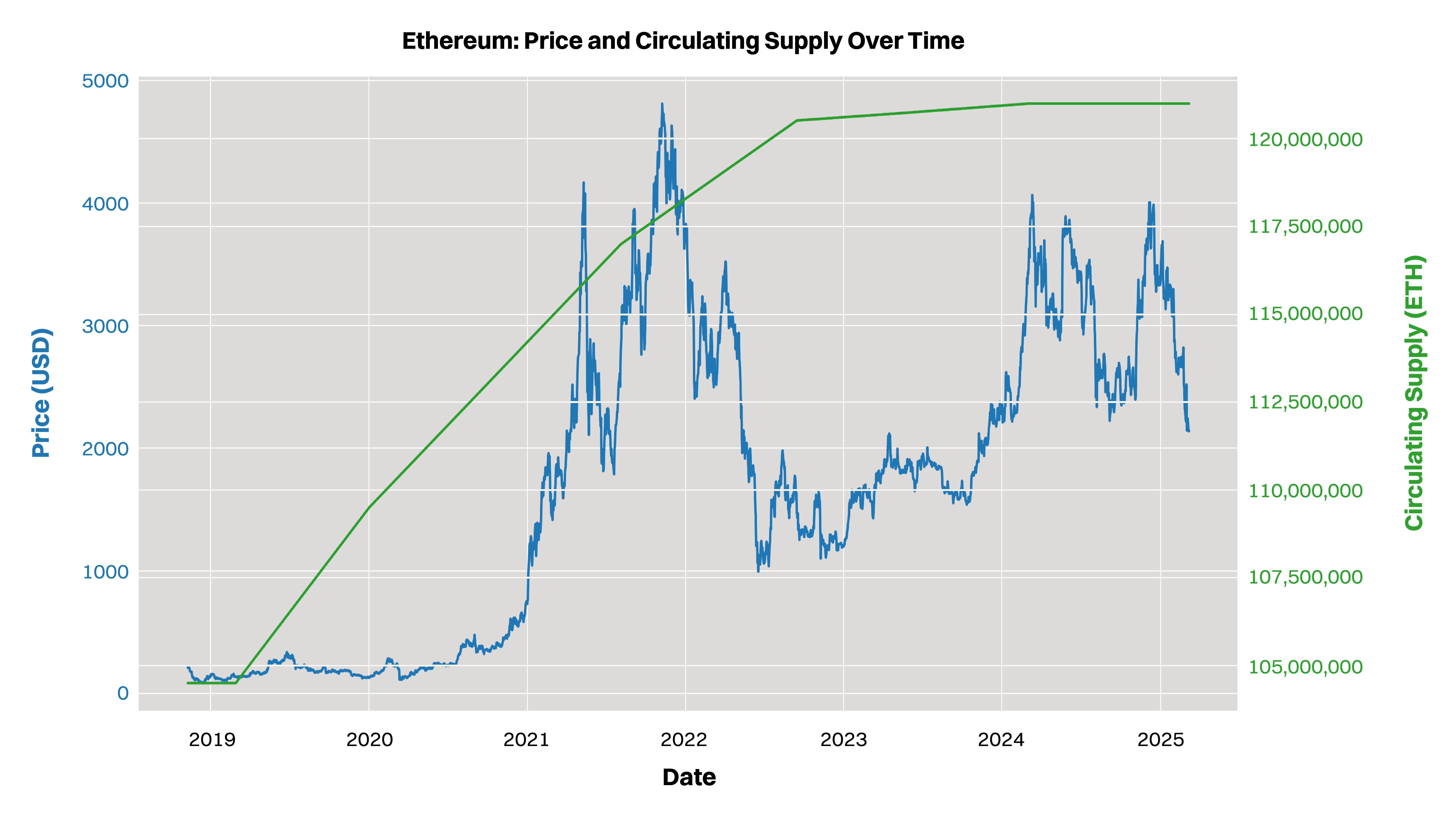 Ethereum Supply vs Price: The implementation of EIP-1559 created a more dynamic supply model where periods of high activity can lead to supply contraction.